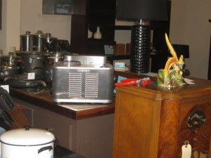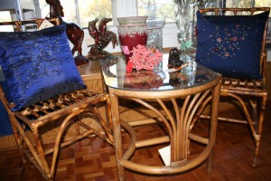 If farm animals aren’t your bag, you’ll enjoy our Out of Africa Room. It’ll feel like you are on safari with the amount of elephants, giraffes and zebras hanging out, along with some authentic peacock feathers. These decorations will be the perfect complement for all the wicker and rattan furniture we are selling, which include some vintage burnt bamboo.
